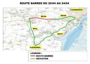 En raison de travaux dâentretien de chaussĂ©e, la circulation sera fortement perturbĂ©e sur la RD786 (commune de Pleudaniel) du 20 au 24 avril 2026 inclus.