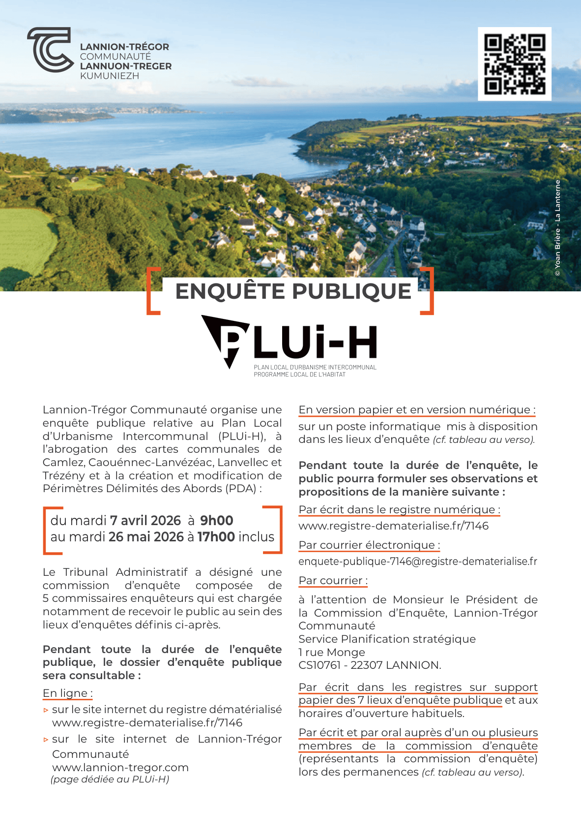 Lannion-Trégor Communauté organise une enquête publique relative au Plan Local d’Urbanisme Intercommunal (PLUi-H)