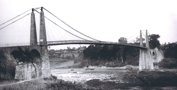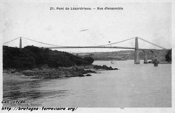 Le 10 juin 1840, l'évêque de Saint-Brieuc bénissait, en présence d'une affluence considérable de spectateurs, le magnifique pont suspendu de Lézardrieux, sous lequel passent à pleines voiles les navires d'un fort tonnage. Ce même jour le préfet des Côtes-du-Nord le livrait à la circulation, et, sur la demande de l'architecte, M. Vignon, les dames patronesses de Lézardrieux et de Plounévez [sic] se faisaient péagères jusqu'au soir dans l'intérêt des pauvres de ces deux communes, auxquels cette journée rapporta 148 fr. 55 c. Les premiers travaux de ce pont avaient été commencés en juillet 1838. Depuis cette époque, Lézardrieux communique facilement et sans danger avec Paimpol, sans être obligé comme autrefois de traverser le bras de mer qui les sépare sur des bacs peu sûrs et fort incommodes