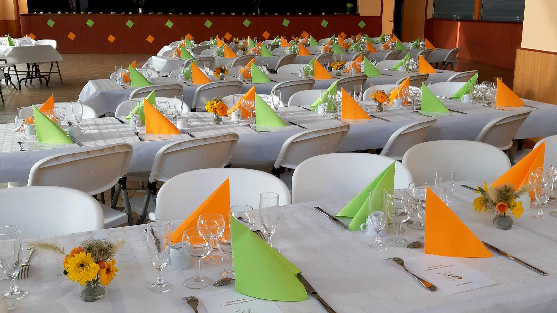 Nous louons aussi tables, chaises, vaisselle, verres, couverts pour les occasions exceptionnelles. Renseignez-vous en mairie…