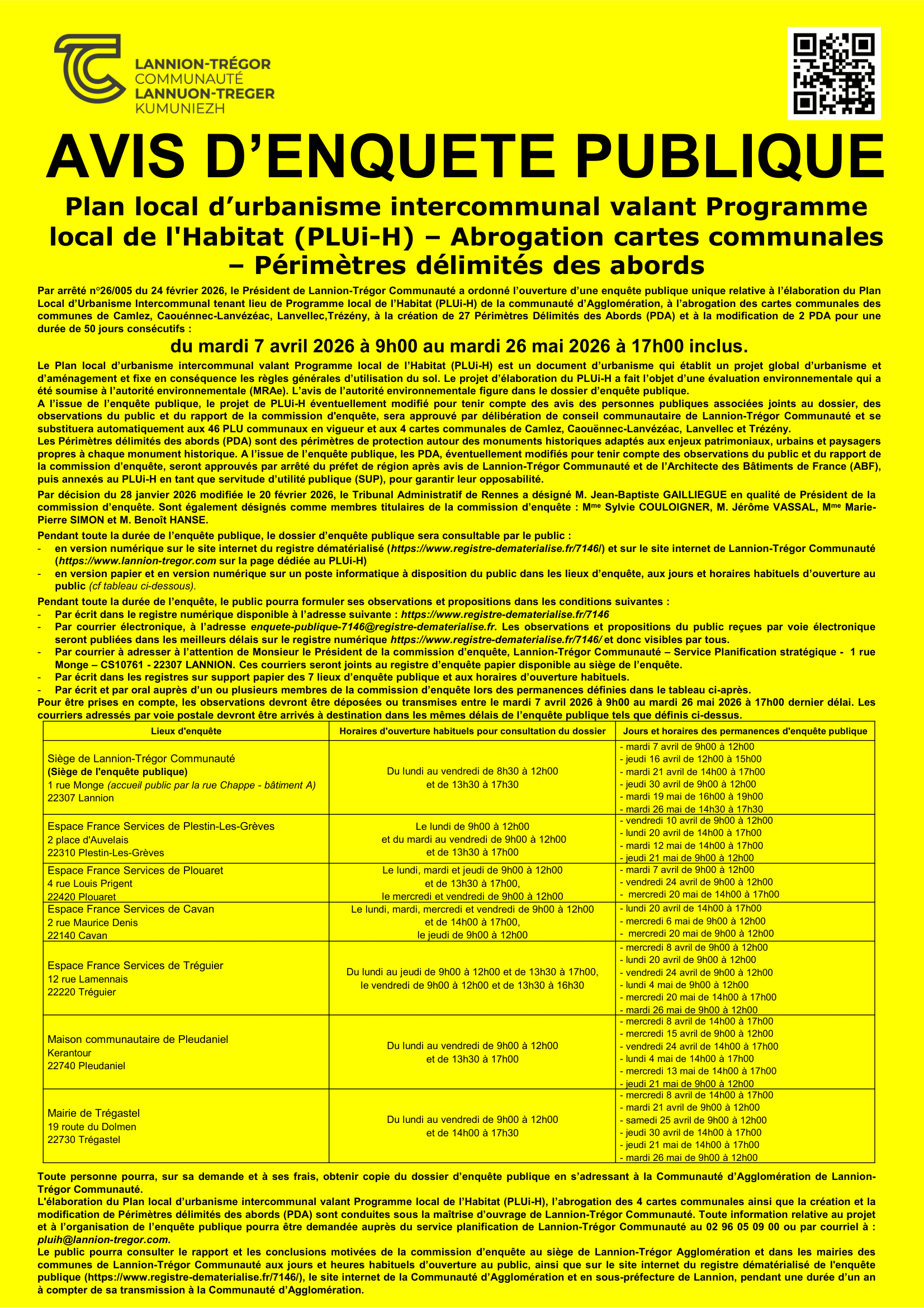 Avis d'enquête publique PLUi-H