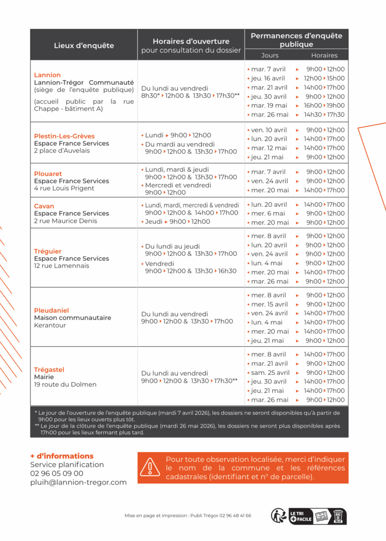L’instruction des dossiers est assurée par Lannion-Trégor-Communauté (LTC), mais la mairie reste votre premier interlocuteur pour vous informer et vous orienter.